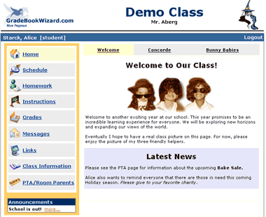 The class website features an intuitive user interface with easy navigation